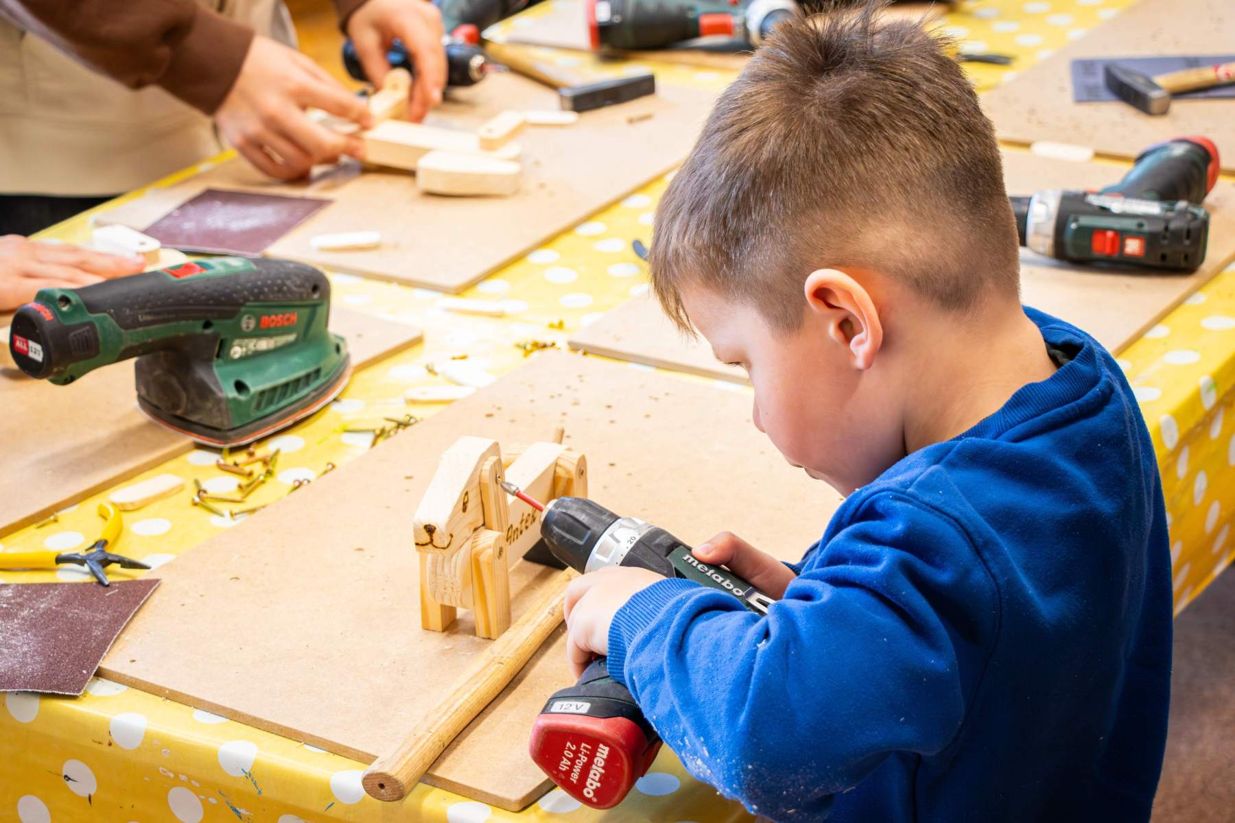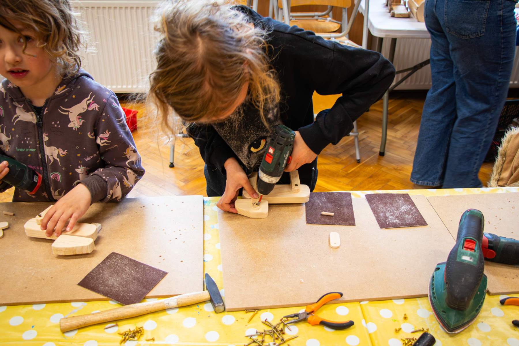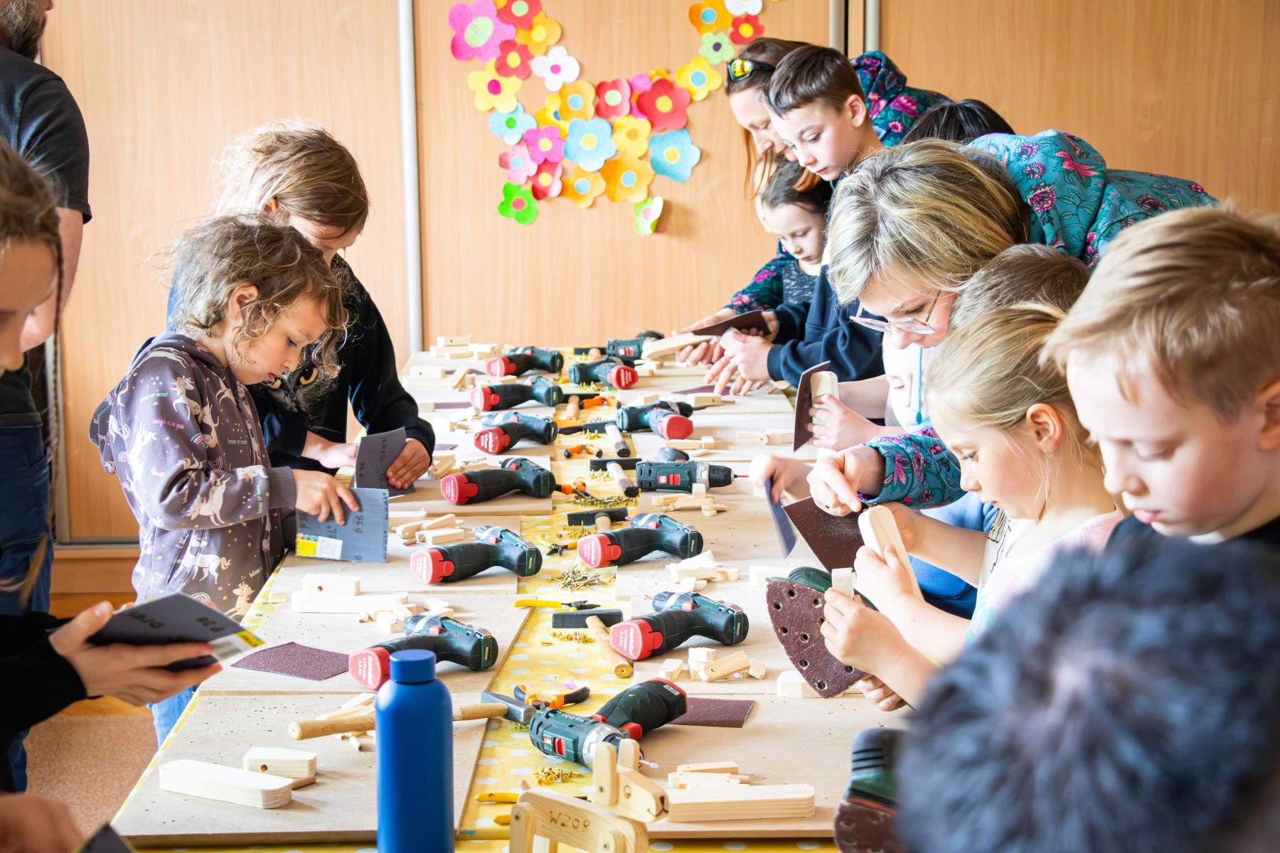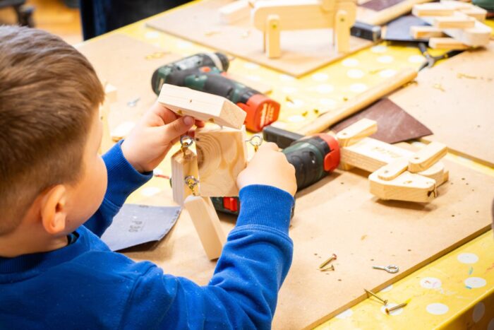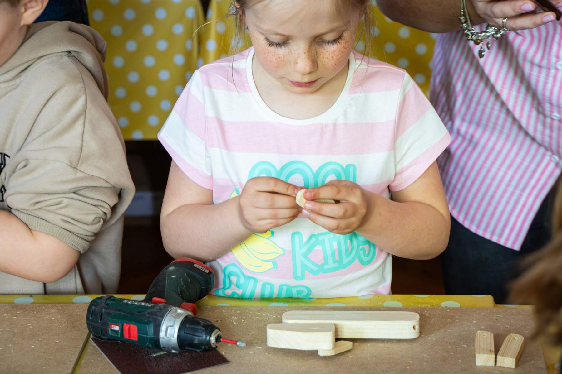 Podczas spotkania uczestnicy mieli okazję zapoznać się z podstawowymi narzędziami i technikami pracy z drewnem. Pod okiem prowadzącego dzieci samodzielnie przygotowywały elementy, a następnie składały swoje prace, rozwijając przy tym zdolności manualne oraz kreatywność.