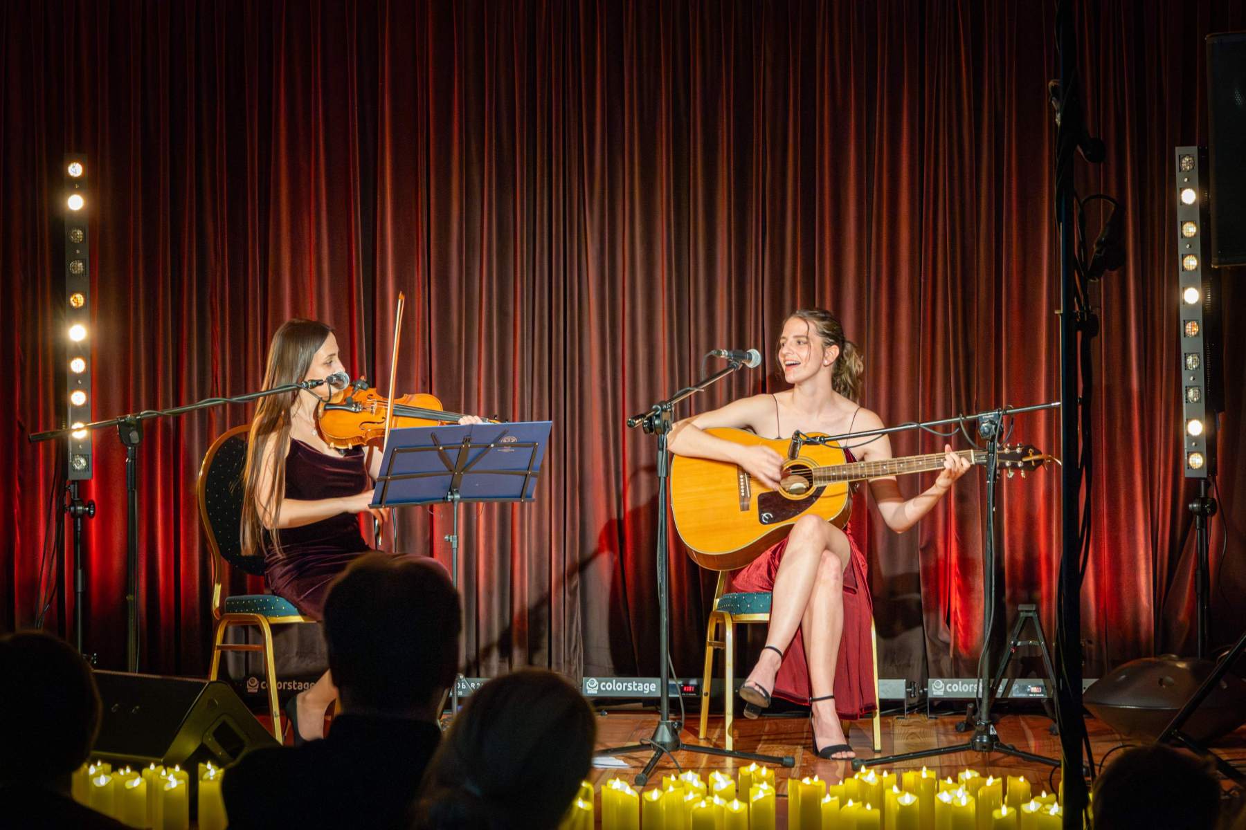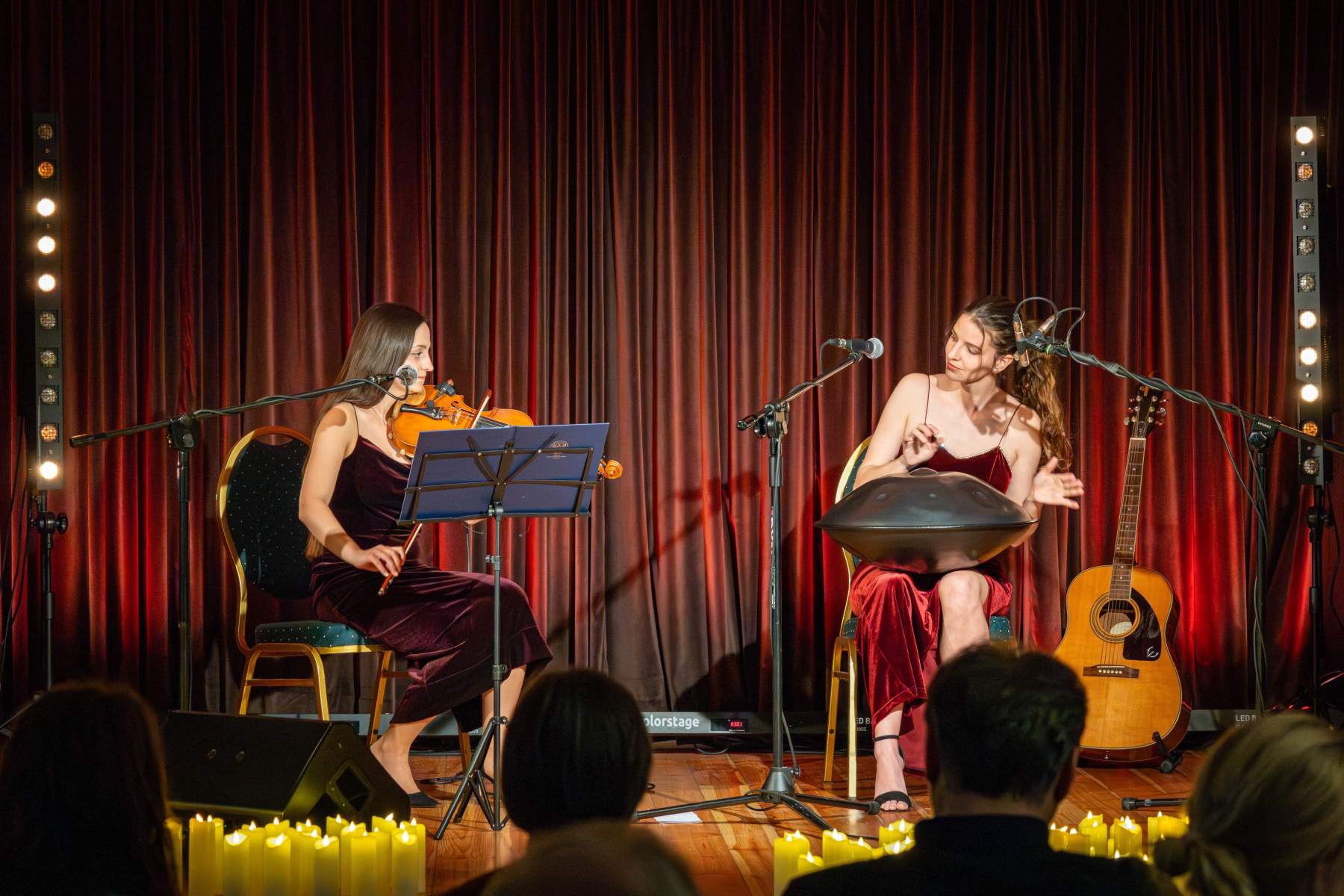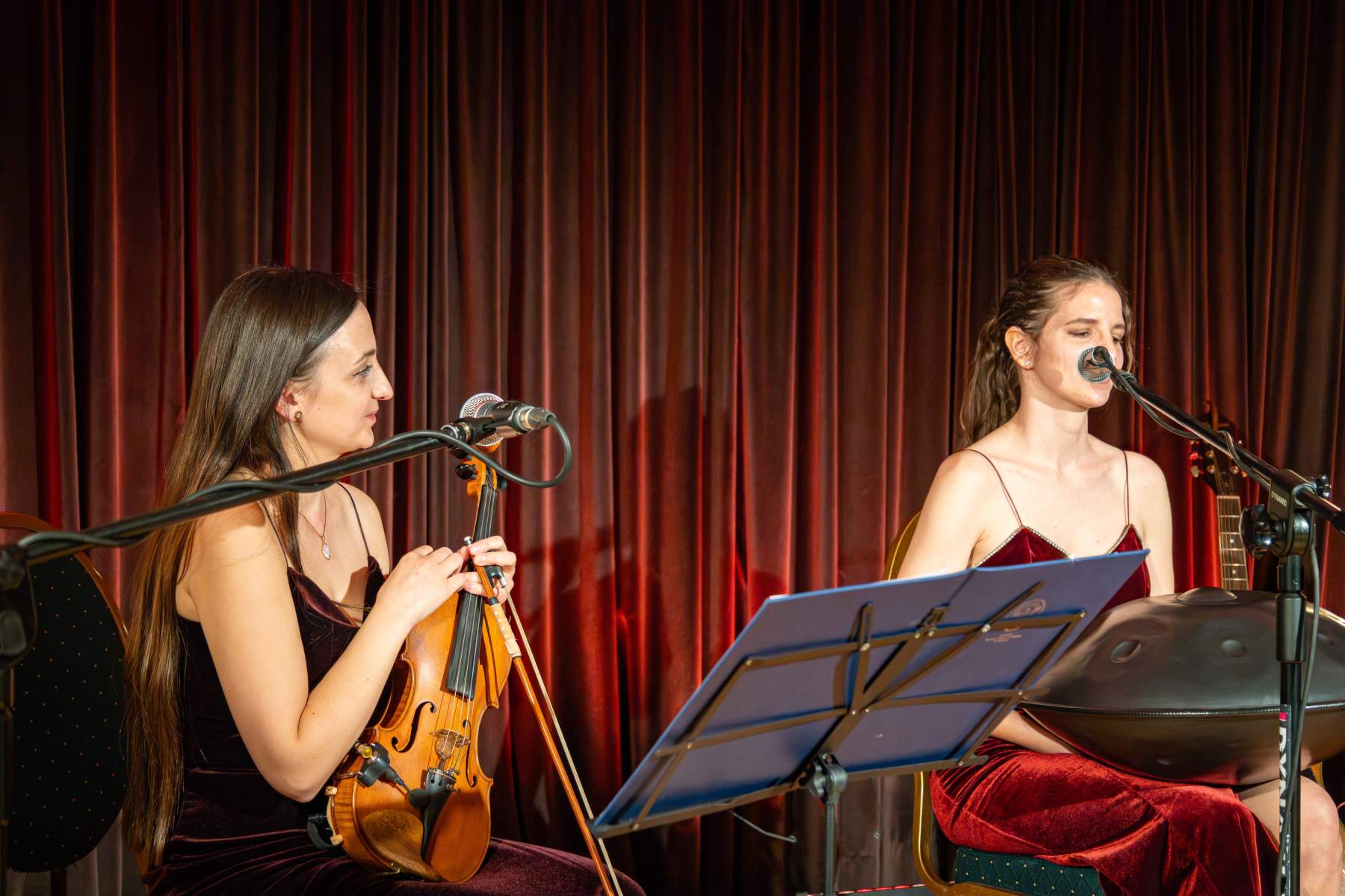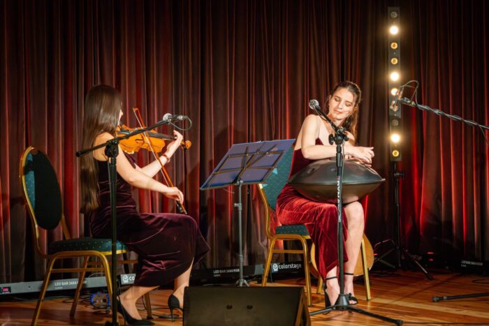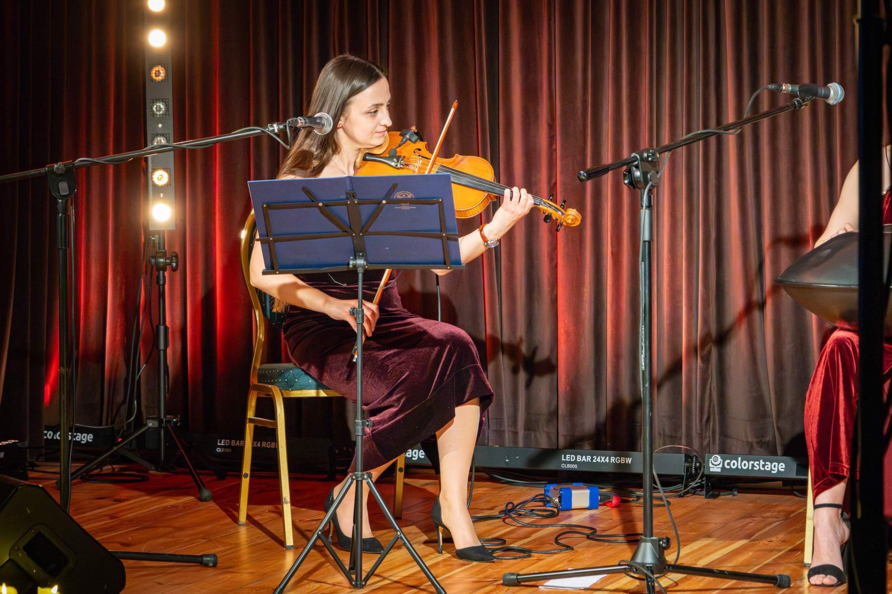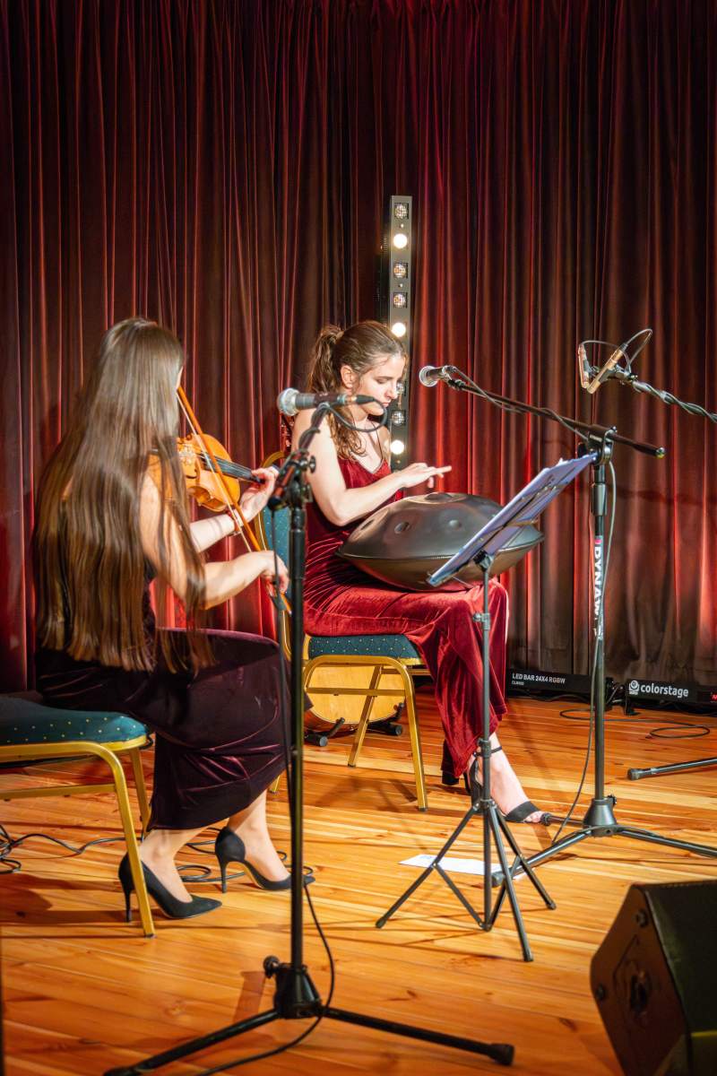 Publiczność miała okazję wysłuchać niezwykłego duetu: Alesii Ramuk, która zaczarowała słuchaczy brzmieniem skrzypiec, oraz Marii Kochańskiej, tworzącej niepowtarzalny klimat dzięki gitarze i handpanowi. Artystki nie tylko zaprezentowały swoje umiejętności, lecz także zabrały uczestników w pełną humoru i ciekawostek podróż po świecie instrumentów. Jednym z takich smaczków była informacja, że hipnotyzujący swoją barwą handpan to stosunkowo młody, bo zaledwie 25‑letni, wynalazek.