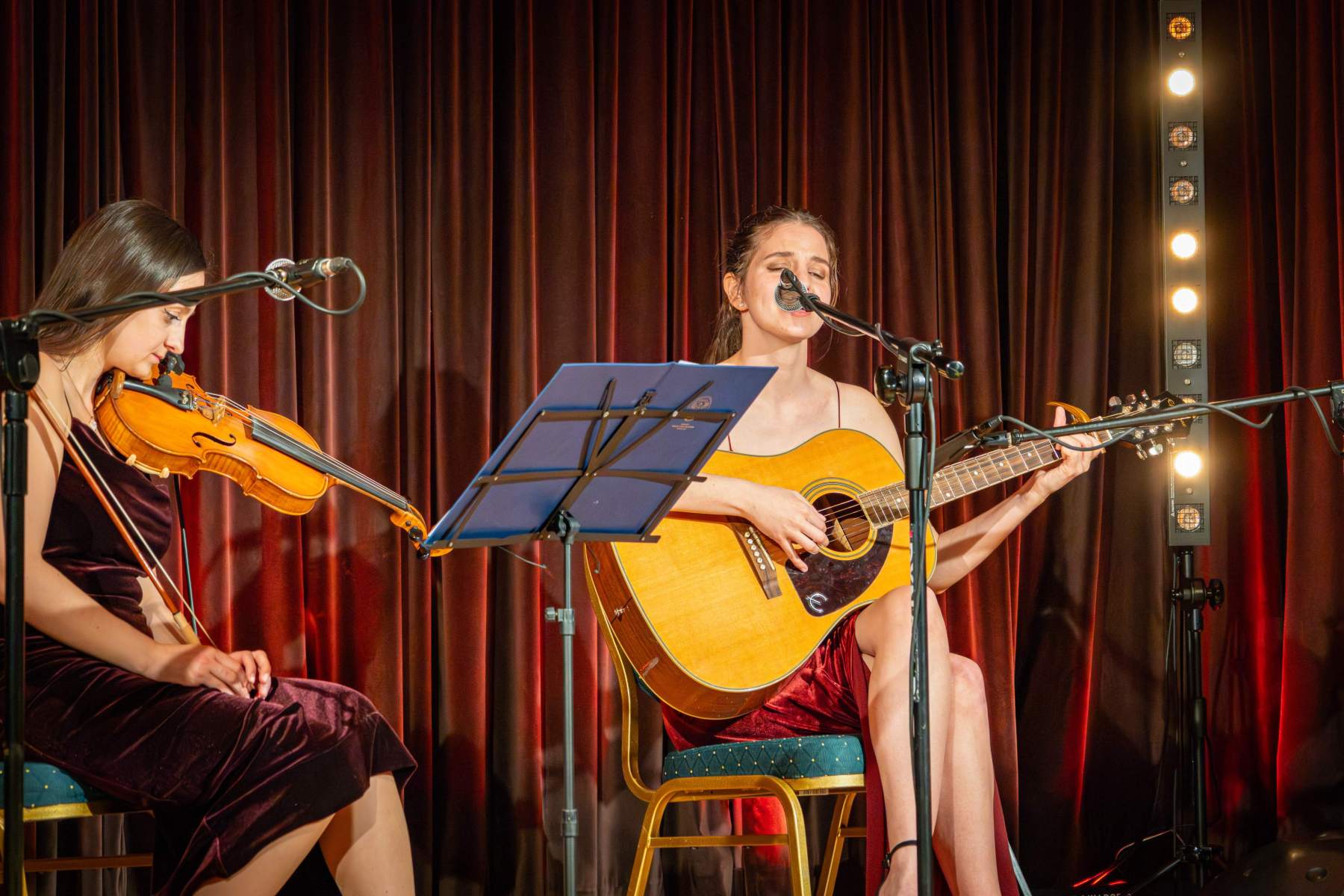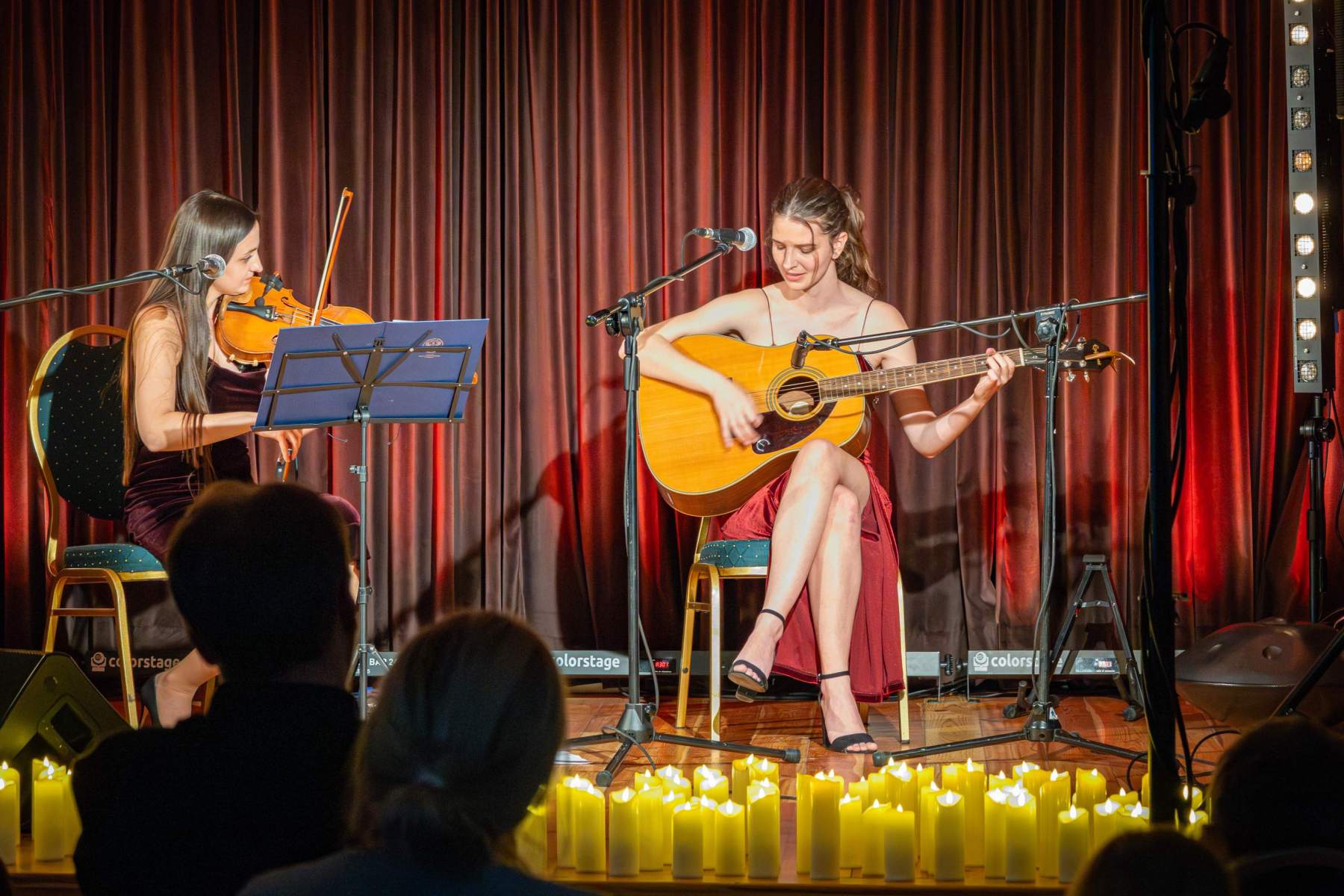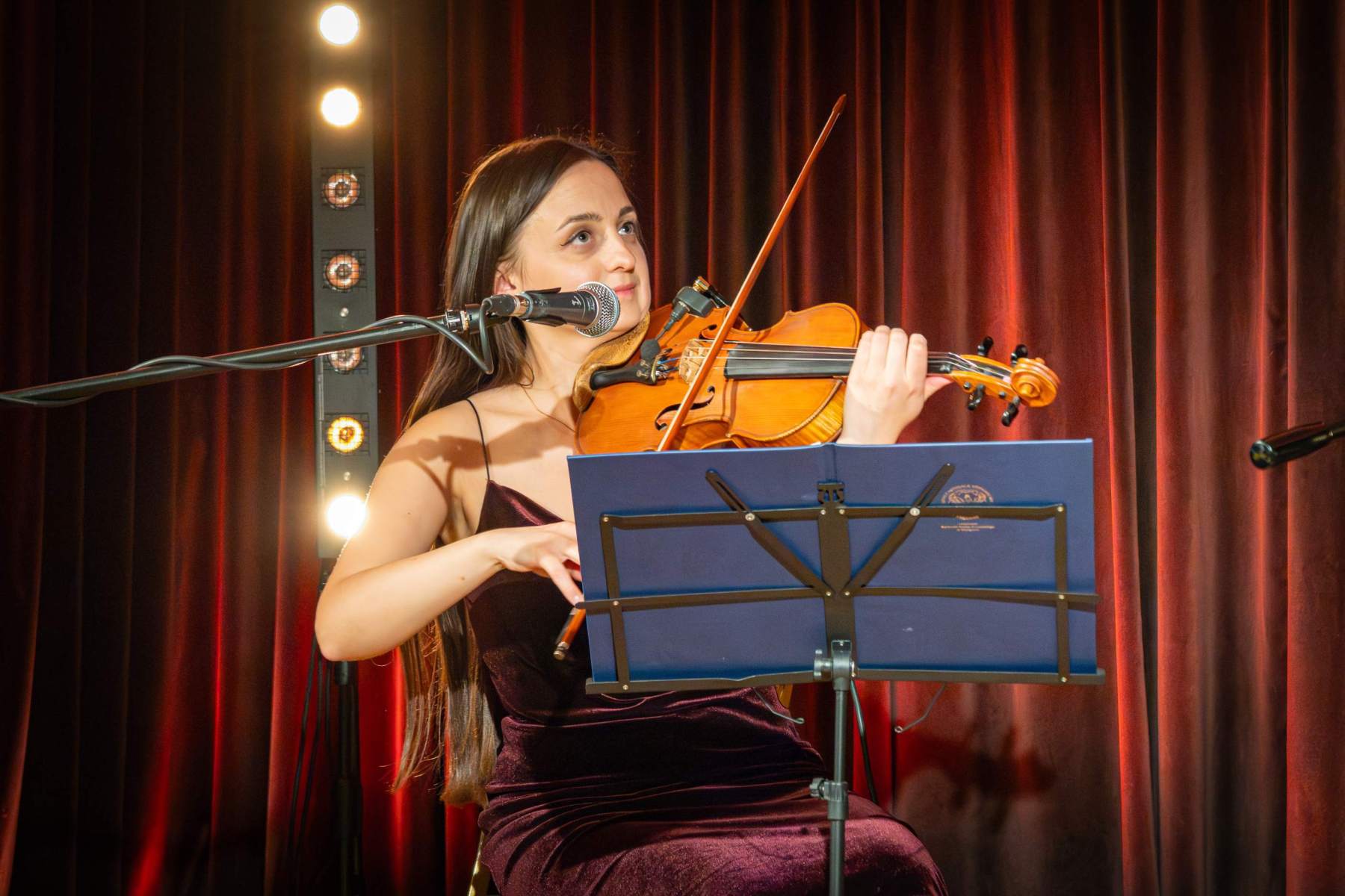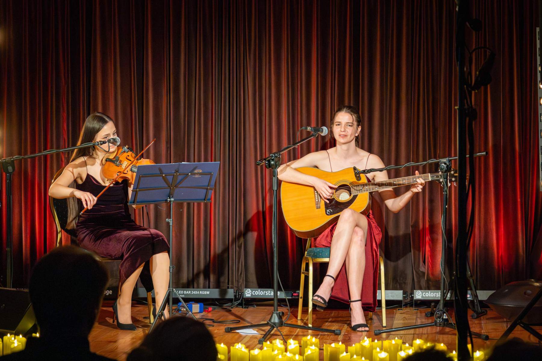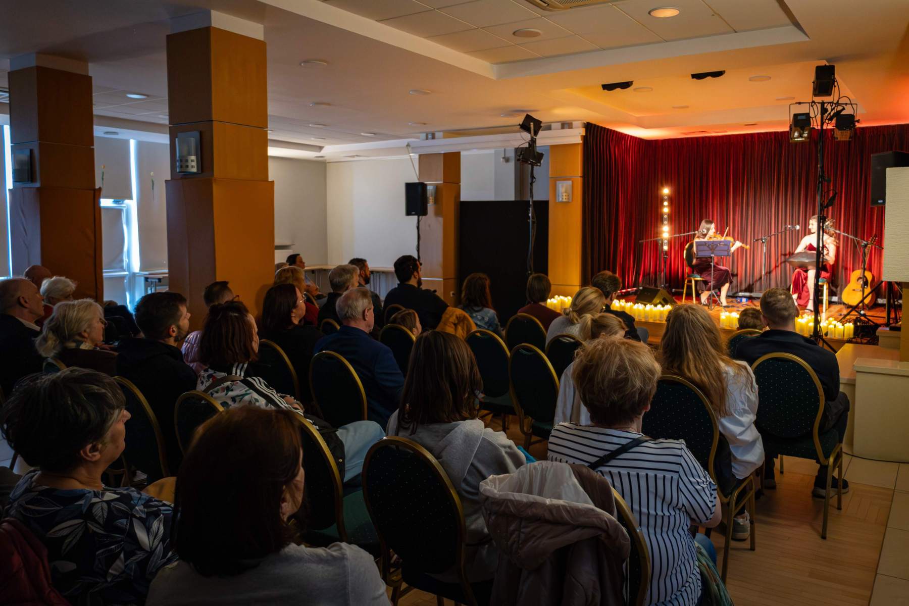 Publiczność miała okazję wysłuchać niezwykłego duetu: Alesii Ramuk, która zaczarowała słuchaczy brzmieniem skrzypiec, oraz Marii Kochańskiej, tworzącej niepowtarzalny klimat dzięki gitarze i handpanowi. Artystki nie tylko zaprezentowały swoje umiejętności, lecz także zabrały uczestników w pełną humoru i ciekawostek podróż po świecie instrumentów. Jednym z takich smaczków była informacja, że hipnotyzujący swoją barwą handpan to stosunkowo młody, bo zaledwie 25‑letni, wynalazek.