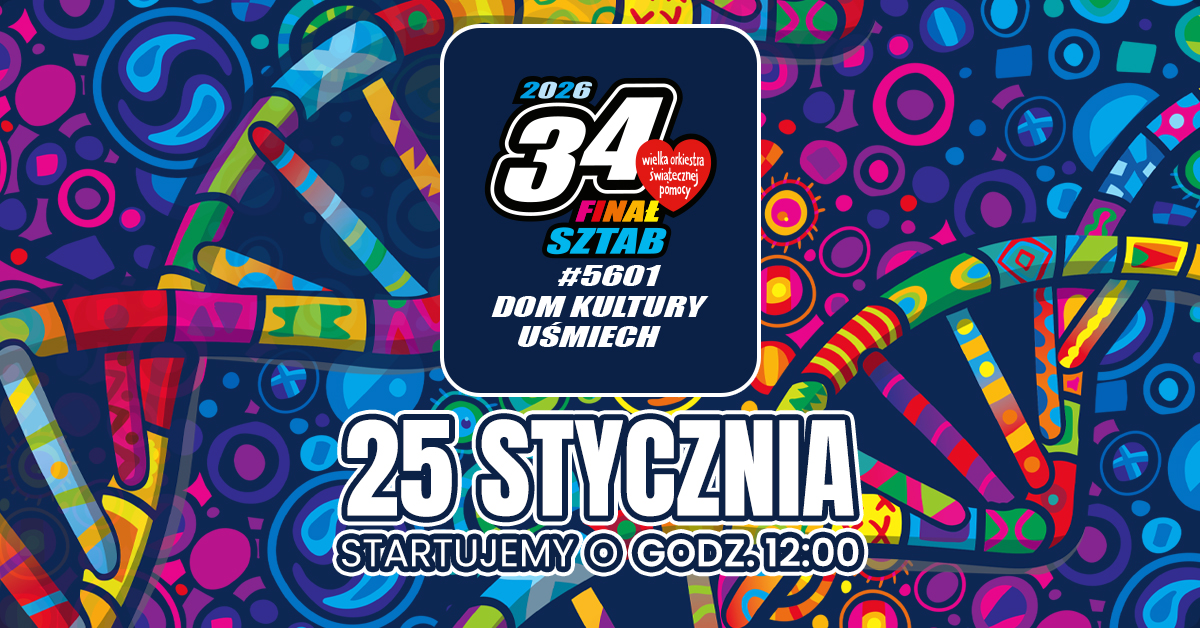 Wielkimi krokami zbliża się 34. Finał WOŚP – dołączcie do nas w Sztabie #5601 w Domu Kultury Uśmiech! Coroczny festiwal charytatywnej energii i pomocy potrzebującym swój tegoroczny finał obchodzi w
