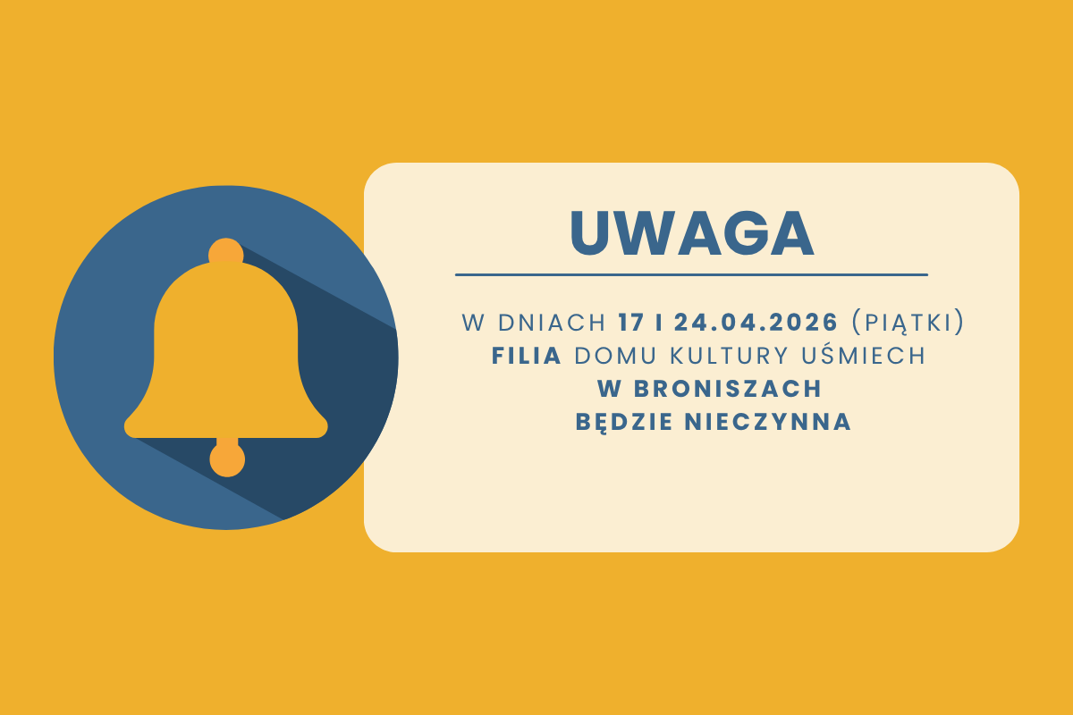 W dniach 17 i 24 marca 2026 r. (piątki) – Filia Domu Kultury Uśmiech w Broniszach będzie nieczynna.