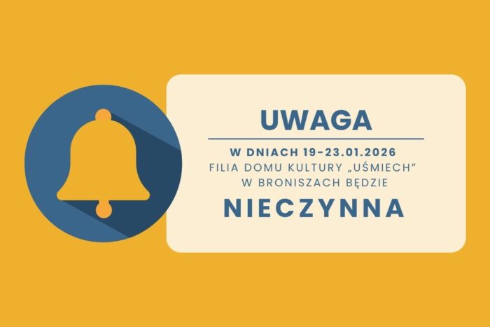 W dniach 19-23.01.2026 r. Filia Domu Kultury Uśmiech w Broniszach będzie nieczynna