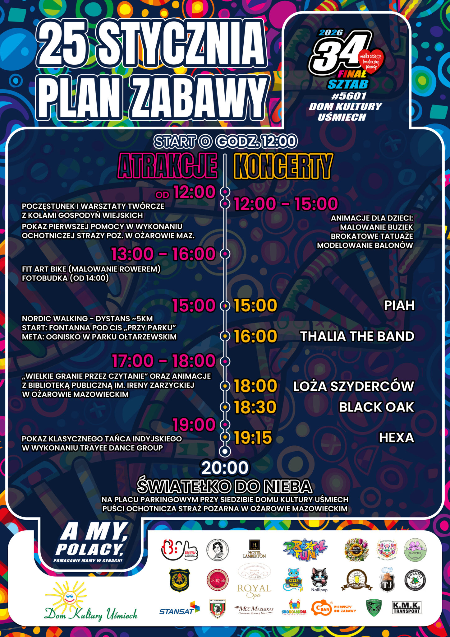 34. WOŚP w Sztabie #5601 Dom Kultury Uśmiech | Ożarów Maz. 13 stycznia, 2026 Udostępnij Wyślij za pomocą e-mail 34. Finał Wielkiej Orkiestry Świątecznej Pomocy w Ożarowie Mazowieckim! Wiecej informacji na temat imprezy w oficjalnym ogłoszeniu [klik!]. Serdecznie zapraszamy!
