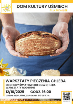 ZAPROSZENIE NA BEZPŁATNE WARSZTATY PIECZENIA CHLEBA Z okazji Światowego Dnia Chleba, Dyrektor Domu Kultury “Uśmiech” w Ożarowie Mazowieckim zaprasza na rodzinne warsztaty pieczenia chleba Z radością zapraszamy Cię na wyjątkowe, pachnące świeżym pieczywem warsztaty, które odbędą się z okazji Światowego Dnia Chleba! To idealna okazja, by poznać tajniki domowego wypieku chleba, spędzić czas w miłym gronie i… po prostu