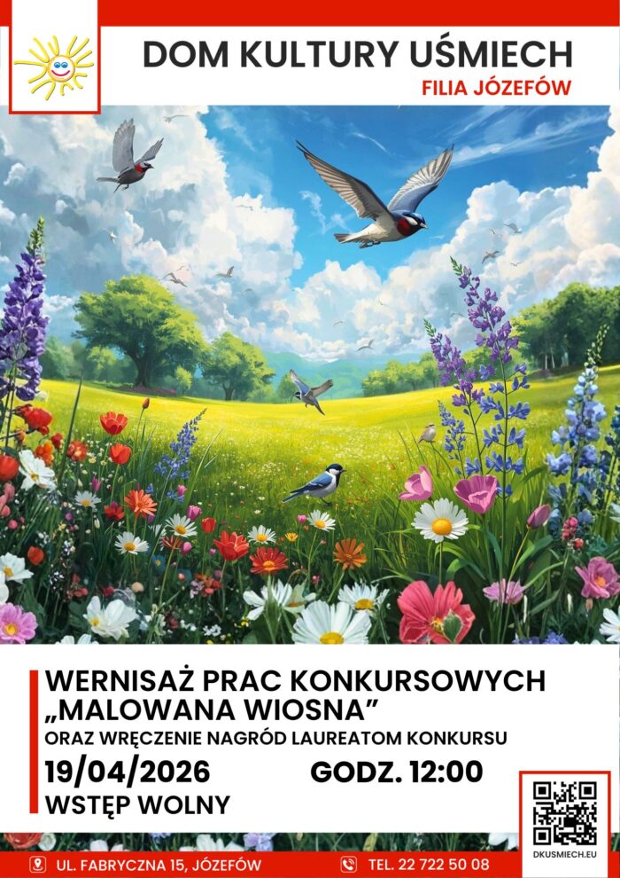 Przed nami wernisaż prac plastycznych wyróżnionych w konkursie “Malowana Wiosna”, organizowanego przez Filię Józefów Domu Kultury Uśmiech.