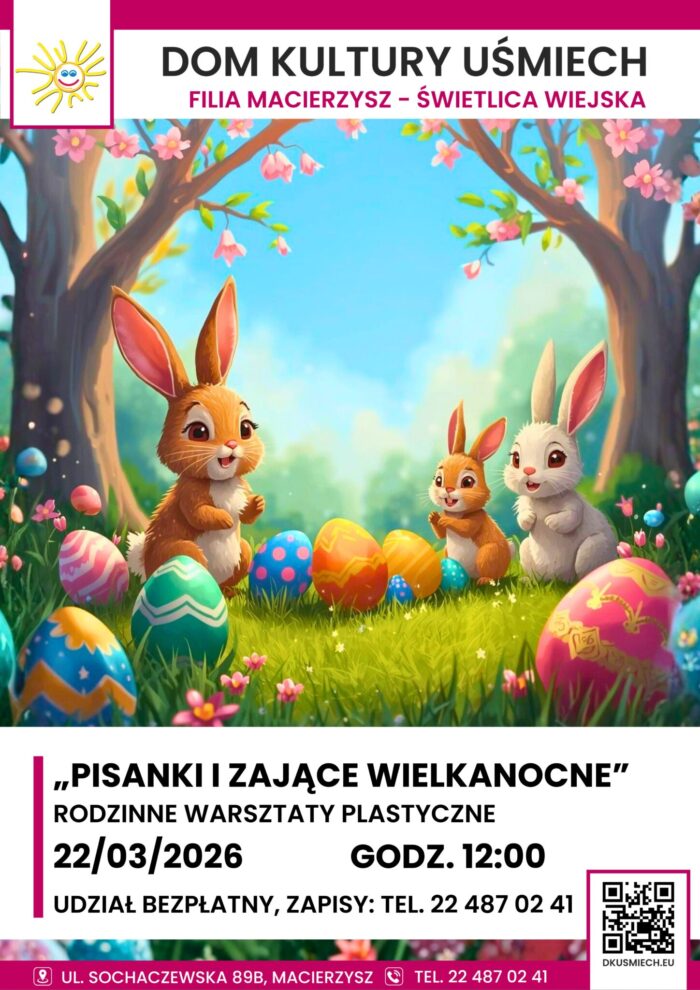 Uczestnicy wspólnie wykonają kolorowe pisanki oraz zające wielkanocne, wykorzystując różnorodne techniki plastyczne.