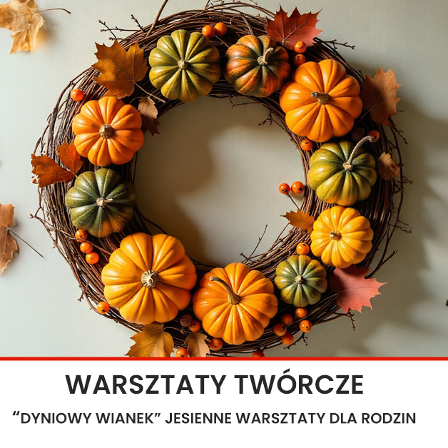 Warsztaty plastyczne pt. „Dyniowy wianek” | Filia Józefów 1 października 2025 Udostępnij Wyślij za pomocą e-mail Jesienne warsztaty plastyczne dla rodzin pt. „Dyniowy wianek” prowadzone przez Katarzynę Cyniak-Górnecką Liczba miejsc ograniczona! Zapisy pod nr tel.: 22 722 50 08 Filia Domu Kultury „Uśmiech” w Józefowie
